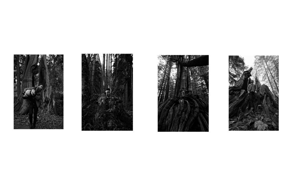 In creating Landscape InterruptedI shot a series of portraits in former and existent old-growth sites. For this I travelled to Kennedy Lake (Tofino), Cobble Hill (Cowichan), Stanley Park (Vancouver), Lynn Canyon (North Vancouver) and Alouette Lake (Pitt River). Many of these areas I found through the Vancouver Big Tree Hiking Guide and others locations through my explorations of the region. Growing up in a logging family on Vancouver Island I had spent most of my childhood in the outdoors.